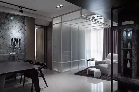 这款轻透亮的压克力灯箱在居室中不但具有时尚前卫的氛围,而内部则是主卧房的更衣室,业主采用这样的设计,就更兼顾了实用性。