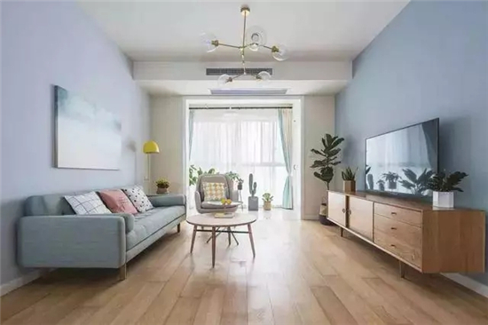90㎡的装修案例整体以淡蓝色为主格调,步入家中像来到海洋一样清新自然,也不会觉得非常拥挤。