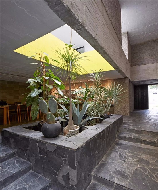 他们根据混凝土制作规范、方便实用的特性,整体的设计既保留了原始墙体的色彩,又有现代化元素与火山石灰、青石板营造了一个“未来灰”的调性。