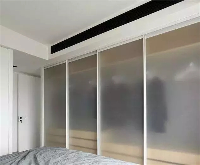 卧室收纳空间很足,衣柜采用磨砂玻璃门,效果一般般吧,说不上漂亮,但也不是很丑。