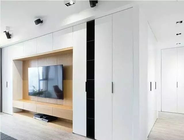 电视墙打了一圈柜子,装修完太好用了,不仅增加了客厅储物空间,而且装饰效果也很漂亮。考虑到清洁方便,柜子都装了门。邻居来参观,看了都夸不错,都想学我家这么装。