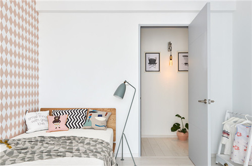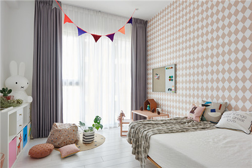 儿童布置同样简单,只是在色彩上偏粉嫩一些。