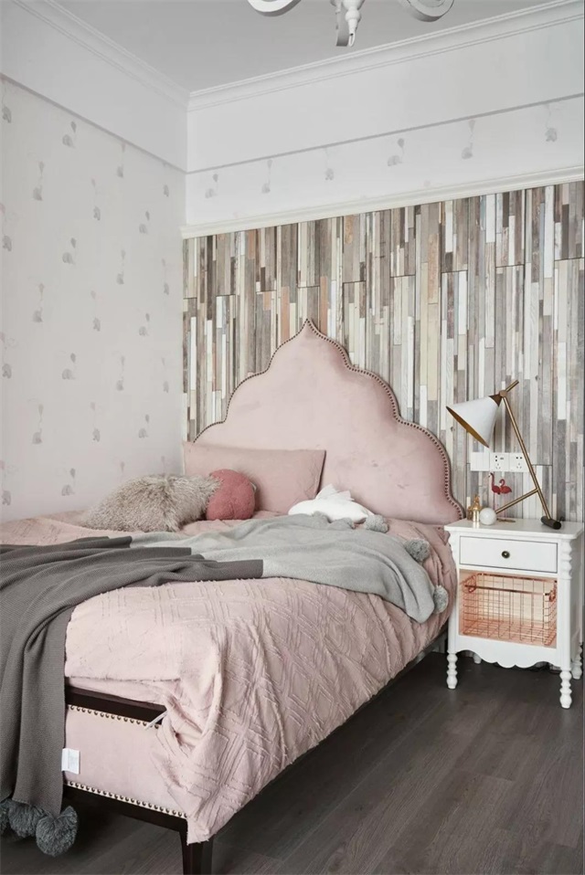 女孩房的设计以暖粉色和白色为主,个性活泼的背景墙,时尚独特的灯具,涂鸦式的地毯,可爱的小兔子,钢琴......呈现出培养小孩兴趣爱好的空间意境。