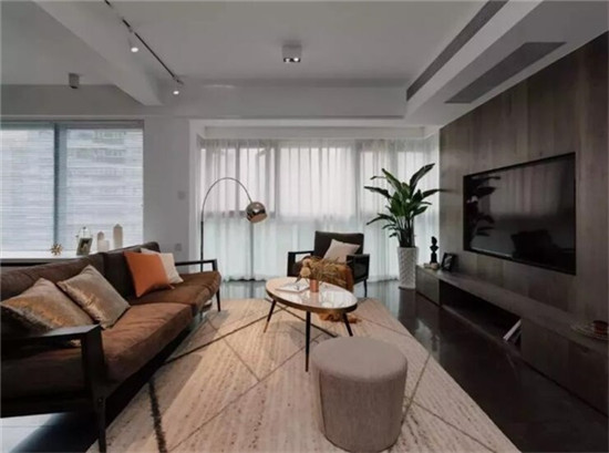 简言之 深色的沙发和墙面在心理上辟出一个独立的空间,带着一点隆重与严肃的感受。