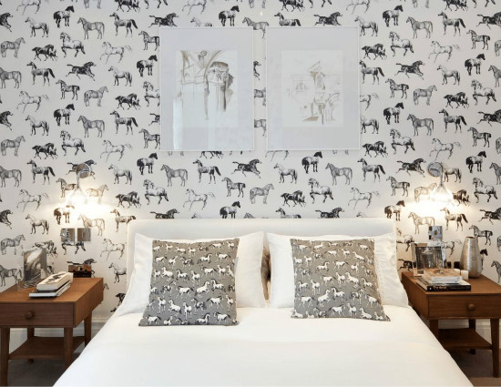 大面积铺贴植物或动物纹样的壁纸在卧室,让人感觉仿佛在清新森林的环抱中入眠,不自觉地会放慢都市生活中的匆匆脚步,享受自然的美好宁静。