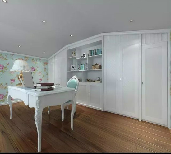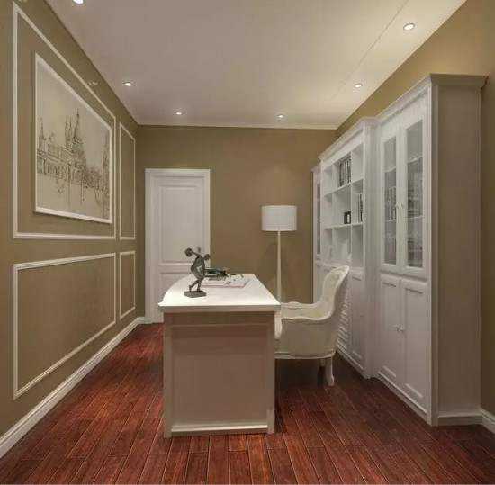 奢华的房间装饰,白色的背景墙,简欧式书房设计,刻画了突出的线条,把握住了现代时尚的欧式设计,结合环保的装修材料,再加上植物的活力搭配,让整个书房设计充满青春活力的味道,又能体现出书房主人高雅的品味。