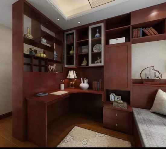 一个小小的中式书房装修便可看出房屋所沉淀出的浓厚的文化底蕴。随着时代的进步,中式书房的设计也会有所改变,什么样的吊顶让书房更具特色,什么样的家具使书房独具韵味这些都值得考究。下面这几款仅供参考。