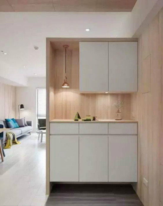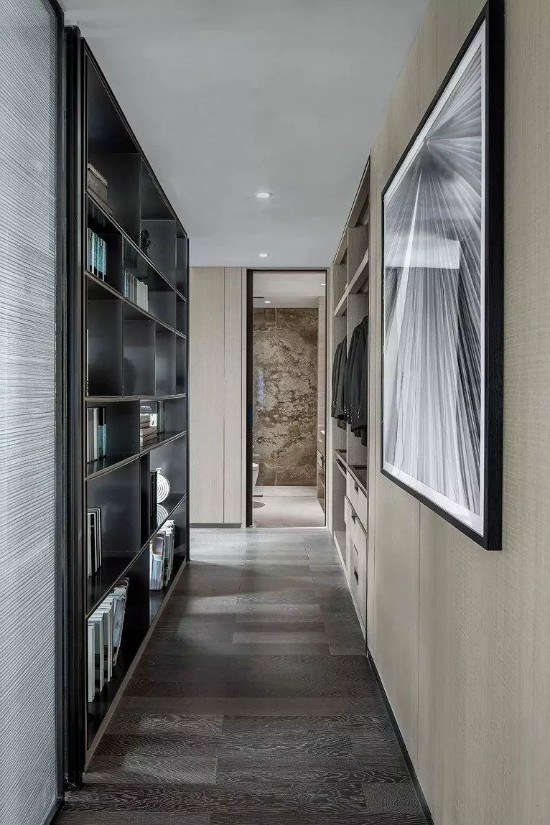 但值得注意的是,如果入口处到卫生间的通道是狭长的走廊式,就不建议这样做,因为这样不但妨碍家里的行走动线,而且看起来非常突兀,影响整体美观。