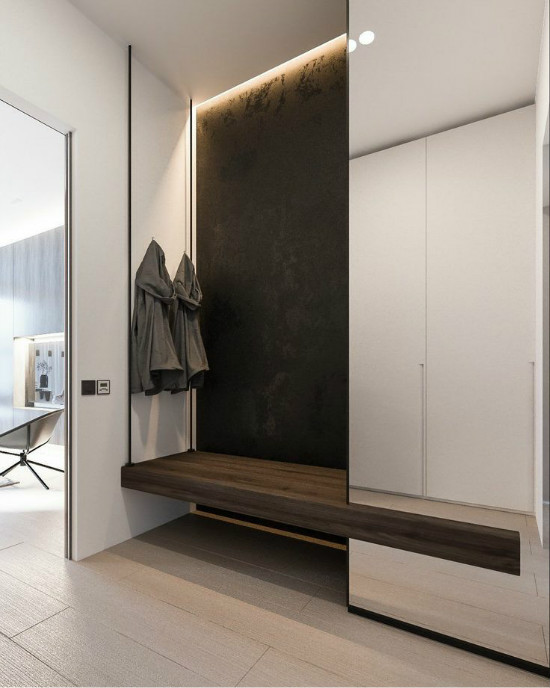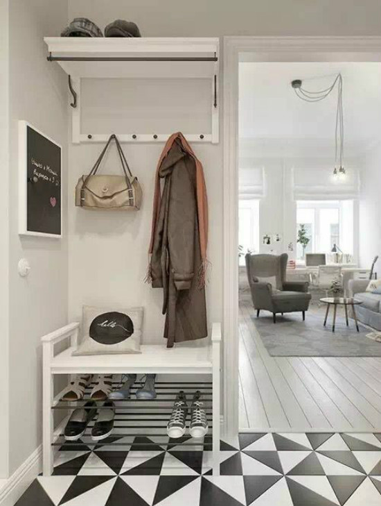 如果户型条件允许的话,在入门处增加一个隔断,用屏风 鞋柜或者屏风 衣柜的方式进行遮挡,既可以满足更多的收纳需求,又能够改变入门气流的走向,巧妙地化解大门正对卫生间门的难题。