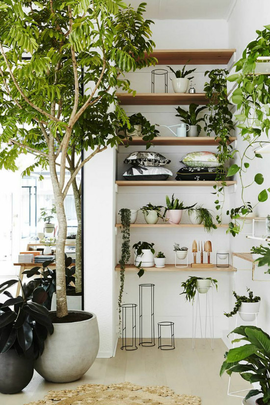 除了门帘之外,还有一种方便又实用的遮挡方式,就是选择高大的阔叶绿植来改善空间格局。