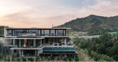 “未来山”的房子,沿着山脊而建,山势渐次抬升。从自然的环境中生长出来一条竹林小径,拾级而上,进入到铺开在纯粹大山大水间的空间,感受人与自然充分的交流,游离尘嚣之外。简约朴素而高雅华美,静谧中隐藏着宁静的气场,足以感染尚未踏进此地的观者。