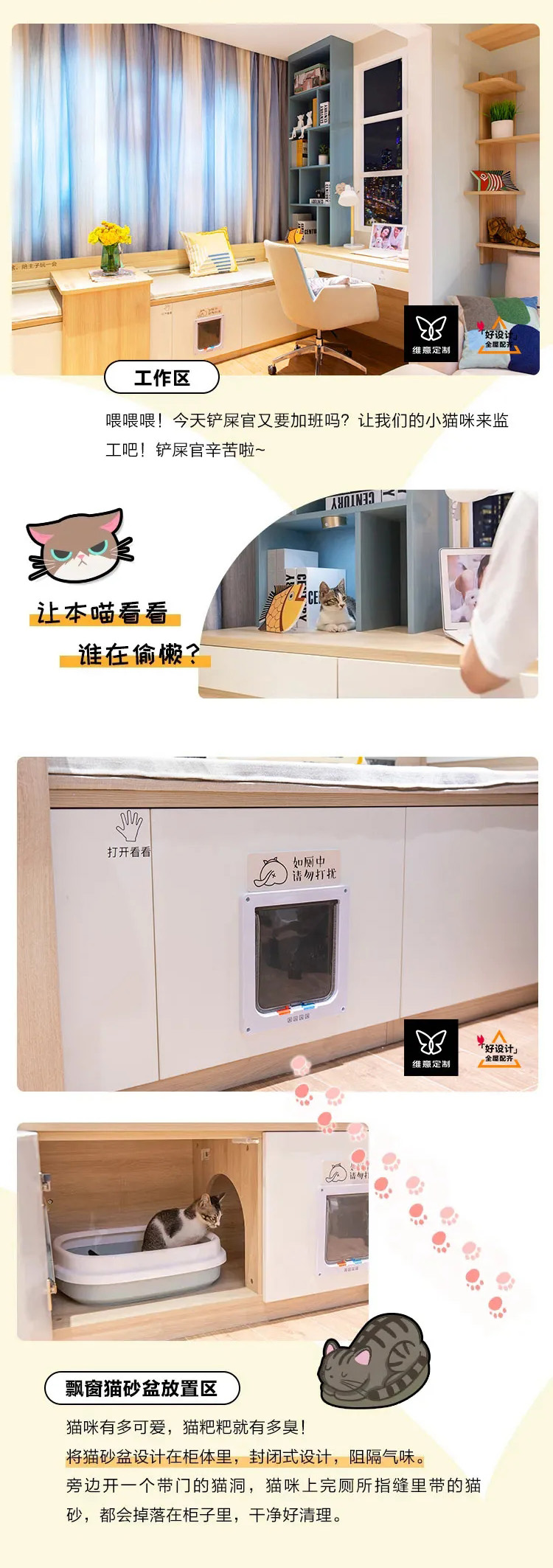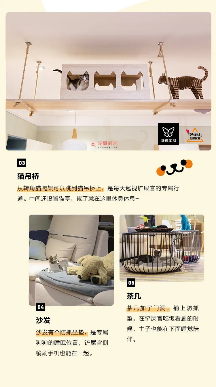 今年「维意定制」研发中心推出萌宠生活方式,从玩乐、陪伴、收纳、清洁四个养宠人最关注的设计出发,把家里打造成宠物的游乐园!感谢它们的陪伴,回馈给它们最好的家~