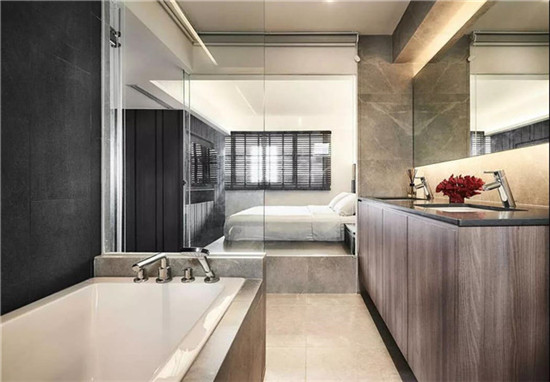 巧妙容纳了洗手池、淋浴区甚至还有浴缸