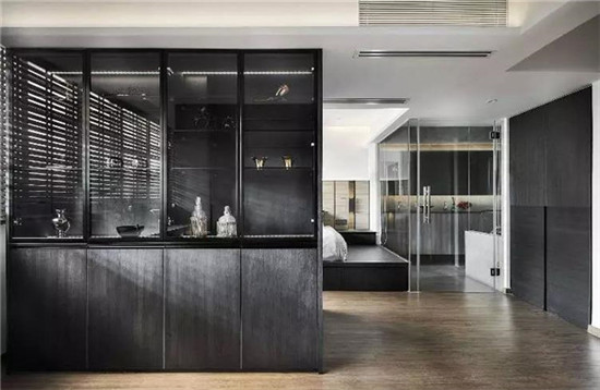 用黑色衣柜来划分空间