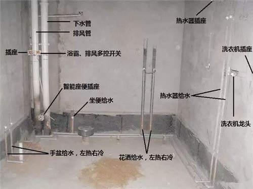 4、冷、热水上水管口应该高出墙面两厘米,铺墙砖时还应该要求瓦工铺完墙砖后,保证墙砖与水管管口同一水平。尺寸不合适的话,以后安装电热水器、分水龙头等,很可能需要另外购买管箍,内丝等连接件才能完成安装;