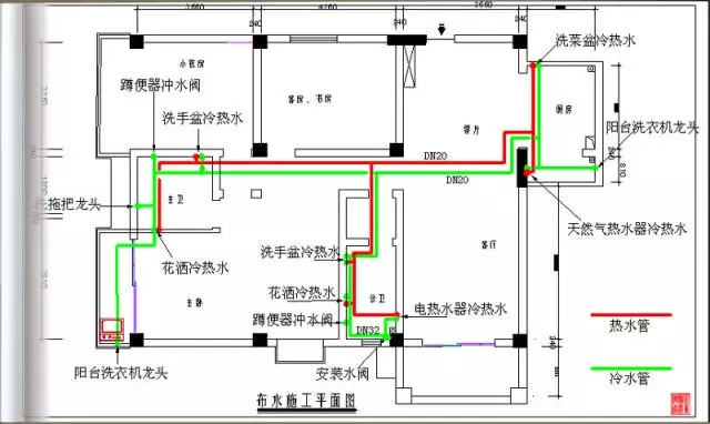 2、热水器电源根据现场情况设置,一般要比进出水口高15公分左右,并向一侧偏出30公分左右。
