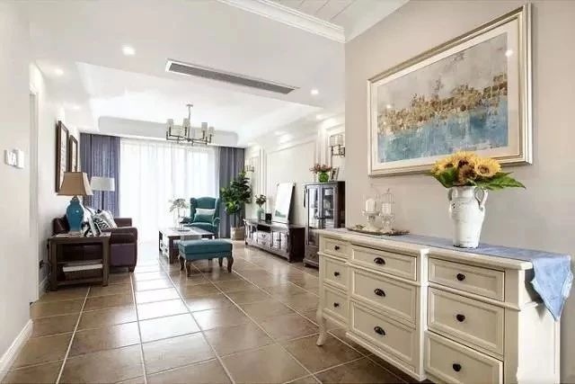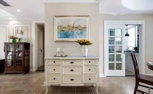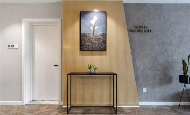 打开入户门,首先会空间玄关柜和玄关画,既美观又能储物。