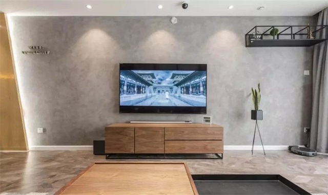 电视墙旁边的简约铁框上搭配装饰品,显得整个空间更加有艺术感。