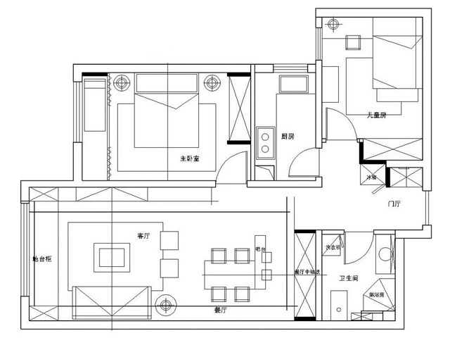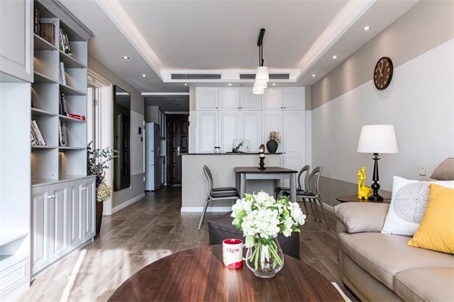 是一个北京比较少见的二居户型,为满足大容量需求,设计师对室内部分非承重墙进行了更改。