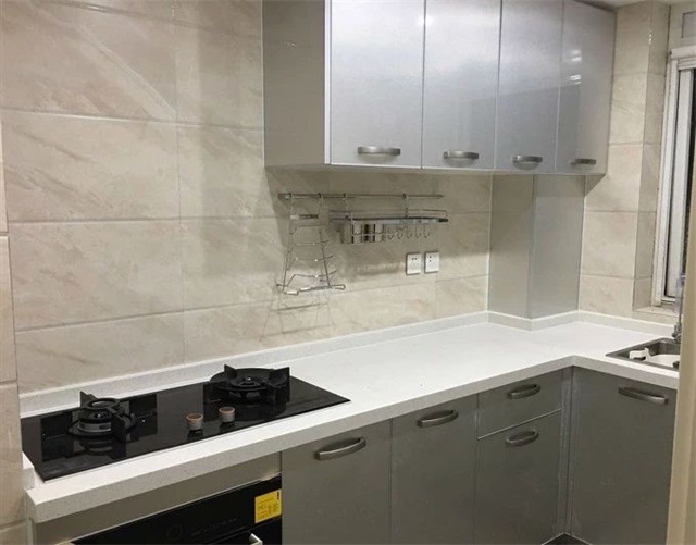 厨房墙砖、橱柜经过设计师精挑细选,搭配整齐干净,又不乏时尚感。