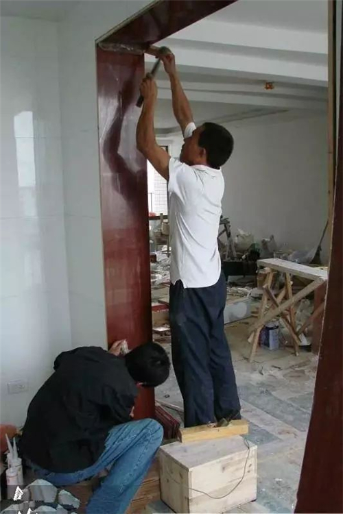 过门石的安装可以和铺地砖一起完成,也可以在铺地砖之后,大理石窗台的安装一般在窗套做好之后,安装大理石的工人会准备玻璃胶,顺手就把大理石和窗套用玻璃胶封住了。