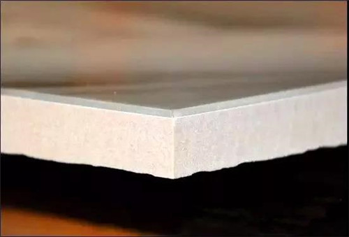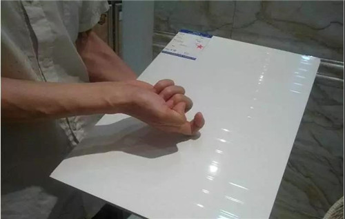 从侧面看瓷砖的组成颗粒是否细腻均匀,内部均匀的瓷砖平直度较高,不会有“翘边”现象。