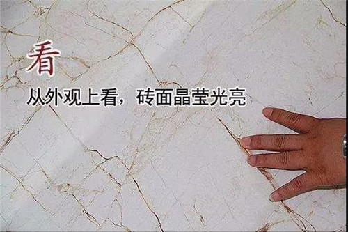 颜色比较复杂的瓷砖从表面很难发现细微的针孔状,可以在射灯或日光灯下观察砖表面的色泽,倒影越清晰的,光泽度越高,硬度越大,也更加耐用。