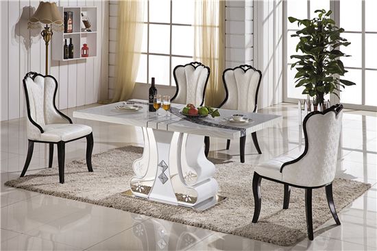 大理石餐桌的强度大、硬度高,有很强的耐磨损性,不容易变形;