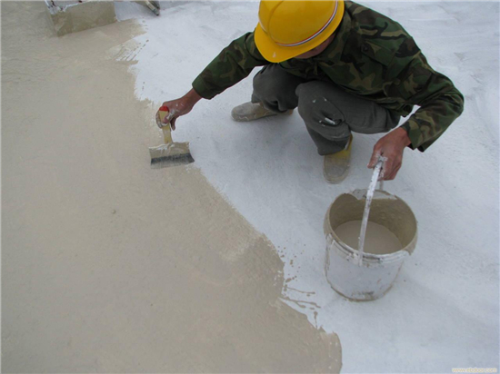 2)聚合物水泥防水涂料,以聚合物乳液为基料,水泥为主要原料,加入填料及其他添加剂配制而成,聚合物的柔性与水泥的刚性结为一体,与基层粘接力强,可在潮湿基面施工。