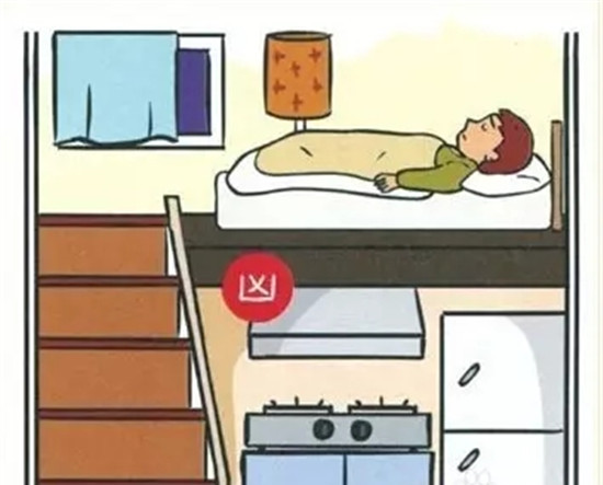 睡觉的位置上或下是厕所,有多恶心不用解释也想得到,只是一般人只想到自家空间如何充分利用,忽略了楼上、下的关系。如果睡床上或下是厨房炉灶,会让人肝火过旺,影响肝功能。