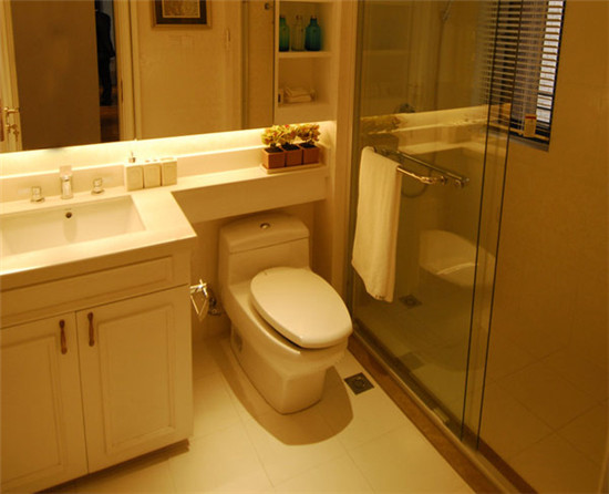 3、卫生间的柜子能够到橱具公司订做,不过要做下面有金属脚悬空的,不然今后漏水了欠好修,平常清扫也方便。洗脸盆和龙头的尺寸要配套。由于当前卫生间遍及面积较小、采光不抱负,并且很湿润,所以在装修和布置卫生间时,需要格外留意安全。