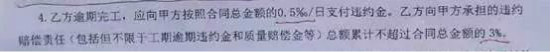 这也有两种解释方式,一,工期逾期违约金和质量赔偿金各自都不能超过合同总额的3%;二,工期逾期违约金和质量赔偿金加起来不能超过合同总额的3%。这要是史学大家写的,就叫作“春秋笔法”;这是拟定合同的法务人士构撰的,可以叫做挖了个坑。