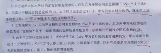 所以我们在上面那份装修施工合同的条文里又发现这么一条也算正常: