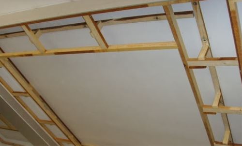 2、木龙骨:龙骨最少 3×4 以上,间距30cm为宜,吊筋间距60-80cm为宜,吊筋严禁直接使用木楔状钉到顶上,刷严密防火涂料直到看不见木龙骨颜色为止,龙骨上蒙一层足尺柳桉芯九厘板后再上石膏板,石膏板与板之间要人为预留5-8mm空隙,石膏板面自攻螺丝内陷1-2mm并做防绣处理,要做到平整牢固,异型要做到线条流畅;