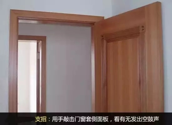 3.门板不应有空鼓,如果门套是用细木工板或密度板制作的话,应先将基层板固定在窗框基层龙骨上。用手敲击门窗套侧面板,如果有空鼓声,就说明底层没有垫细木工板等基层板材,应该重做。