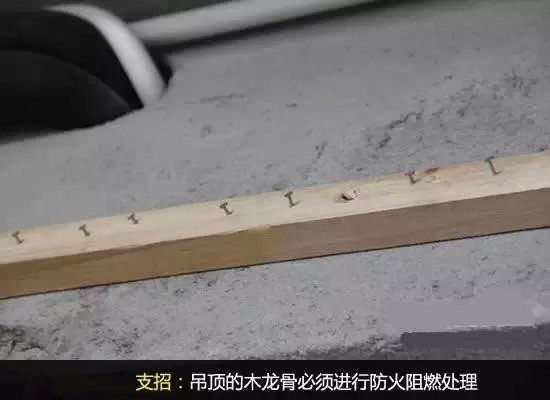 2.阻燃处理别忘记木龙骨,必须进行防火阻燃处理,并且安装前要涂刷防火涂料。涂料的厚度、涂刷方法都应该按照严格的使用说明。