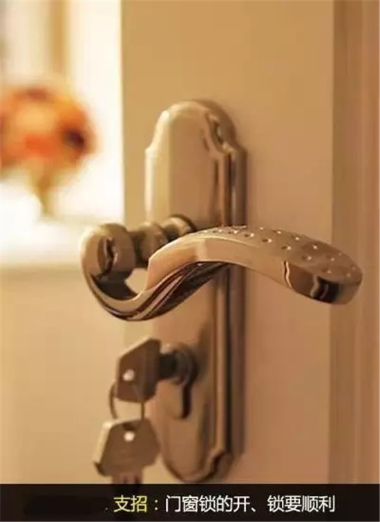 5.钥匙和锁要配套一把钥匙一把锁,锁在门扇和门框上的两部分要吻合。