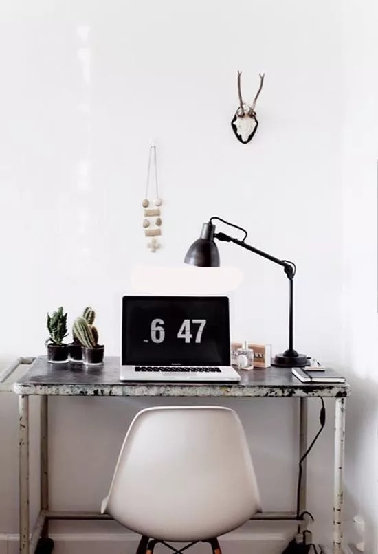 略有锈迹的铁艺小台面看着极具有年代感,配上一个现代感的椅子,是不是很有感觉呀?老旧和现代的碰撞,在设计师专业搭配布置下让整个空间看起来很舒服。
