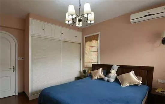 推拉门是左右开合,不占空间。而平开门打开时需要占一点空间,前期设计时需要规划好尺寸。如果卧室面积比较小,衣柜距离床头柜很近,用平开门的话就很勉强了。