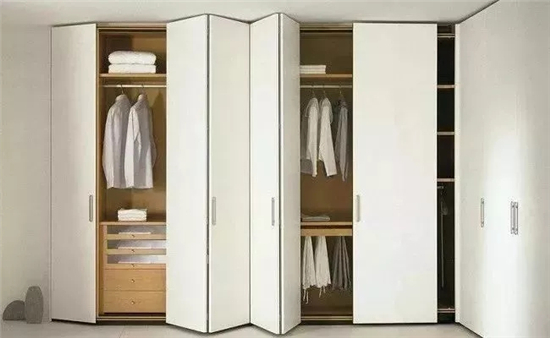 装了折叠门的衣柜,可以把门全推到一边去,露出整个柜体,分分钟变身衣帽间。滑开柜门,柜内所有衣物一目了然,拿取非常方便。