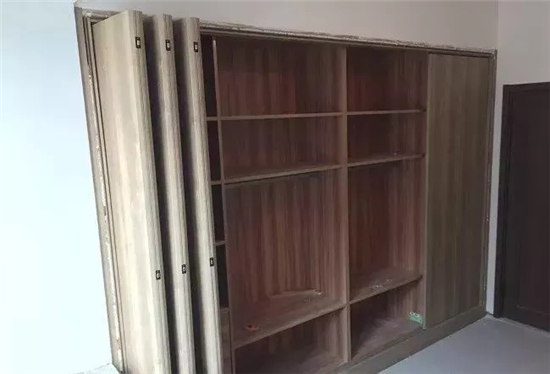 既然和平开门一样需要占空间,为什么不会出现和床头柜相冲突的情况呢,重点在于,每一折门都可以滑动到任意位置。如果有一扇门的位置被床头柜挡住了,可以把它滑到另一个位置打开。
