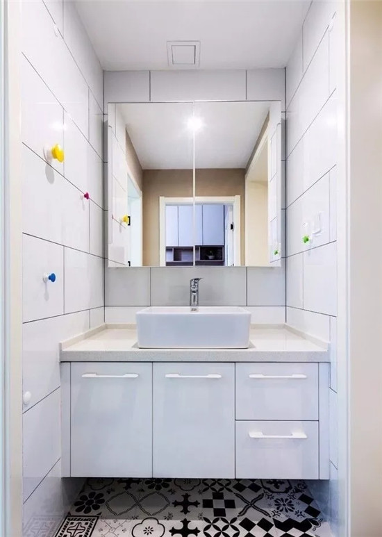 这款台上盆的洗手台是属于比较常见的款式,最适合用在简约风格的户型里,像上图一样,搭配花砖就不会显得太过单调。