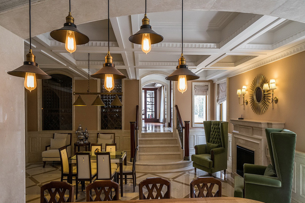 1、低调奢华的灯具风格主要以新古典灯具以及水晶灯为主,灯具在低调奢华风格中的点缀就如同珠宝在一位贵夫人身上的点缀一般。因此,水晶、玻璃等闪亮材质等同于钻石珠宝。
