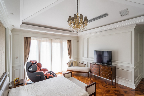 3、温馨舒适:奢华设计的目的是生活享受,这种享受除了满目所及的奢华视觉之外,满足于身心感受的奢华感也是至关重要的。有人做了一个比喻,在寒冷的冬天里,一张顶级的舒适羊绒被能给你极其温柔的呵护。这也正是“奢华风格”欲达到的境界,希望在没有任何束缚和压力的环境中,打造一片能让身体完全放松又感到无比舒适的温馨环境。