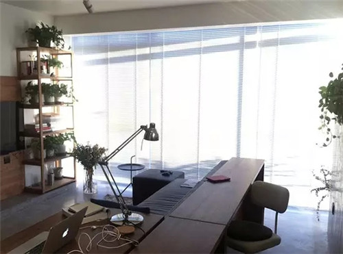 用定制的书桌打造了沙发和书房的二合一完美设计,同时,这还是个超棒的隔断!!