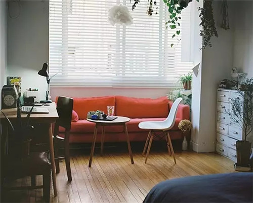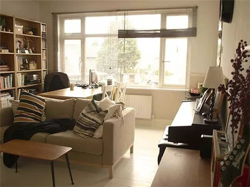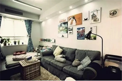 一溜儿靠墙摆放,这是一直奉行的小户型布局法则,这样就能预留出更集中更统一的空白空间,可以铺一条大大的彩色地毯,也可以打一个地铺!