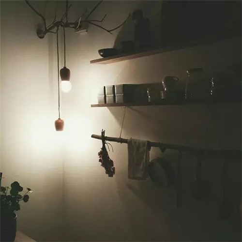 灯非常非常好看,挂灯绳的支架,不知道是特别的款式,还是随意路边折来的树枝。像这样一个厨房搁架,更让和家小编觉得充满了人情味和焰火味。