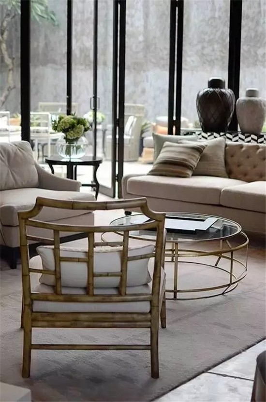 现代中式风格是将现代元素和传统元素进行了有机的结合,以现代人的审美需求去营造传统韵味。新中式风格大多数采用对称式的布局,用以营造清幽雅致的生活氛围,在装饰细节上崇尚自然情趣。在家具选配上,一般采用传统的圈椅,条案等中式家具去进行西式陈设,强调舒适性与实用性。在色彩上,通常以黑、白、灰色为基调,局部用红、黄、蓝、绿等进行点缀。在材质上,多采用硬质木材进行加工,用来表现东方文化的内敛气质。