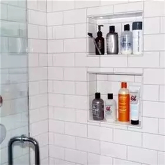 同样,可以在设计卫生间的时候,在淋浴房墙上做一两个壁龛,美观又方便收纳。