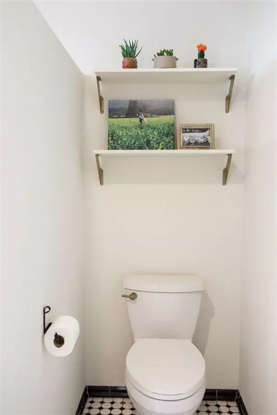 对于小户型来说,马桶上方的区域也可以充分利用起来,放置厕纸、香薰、厕所读物等等。